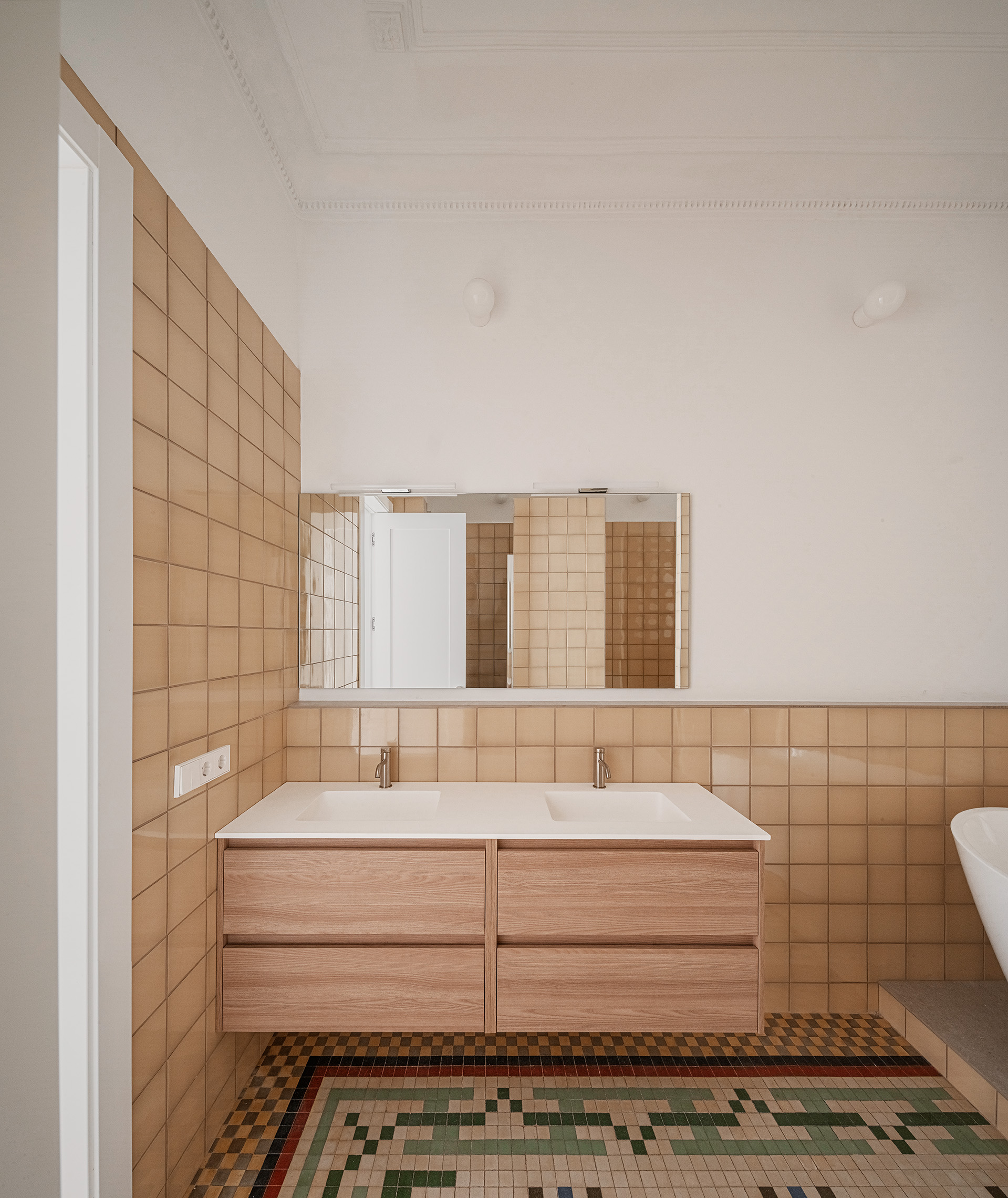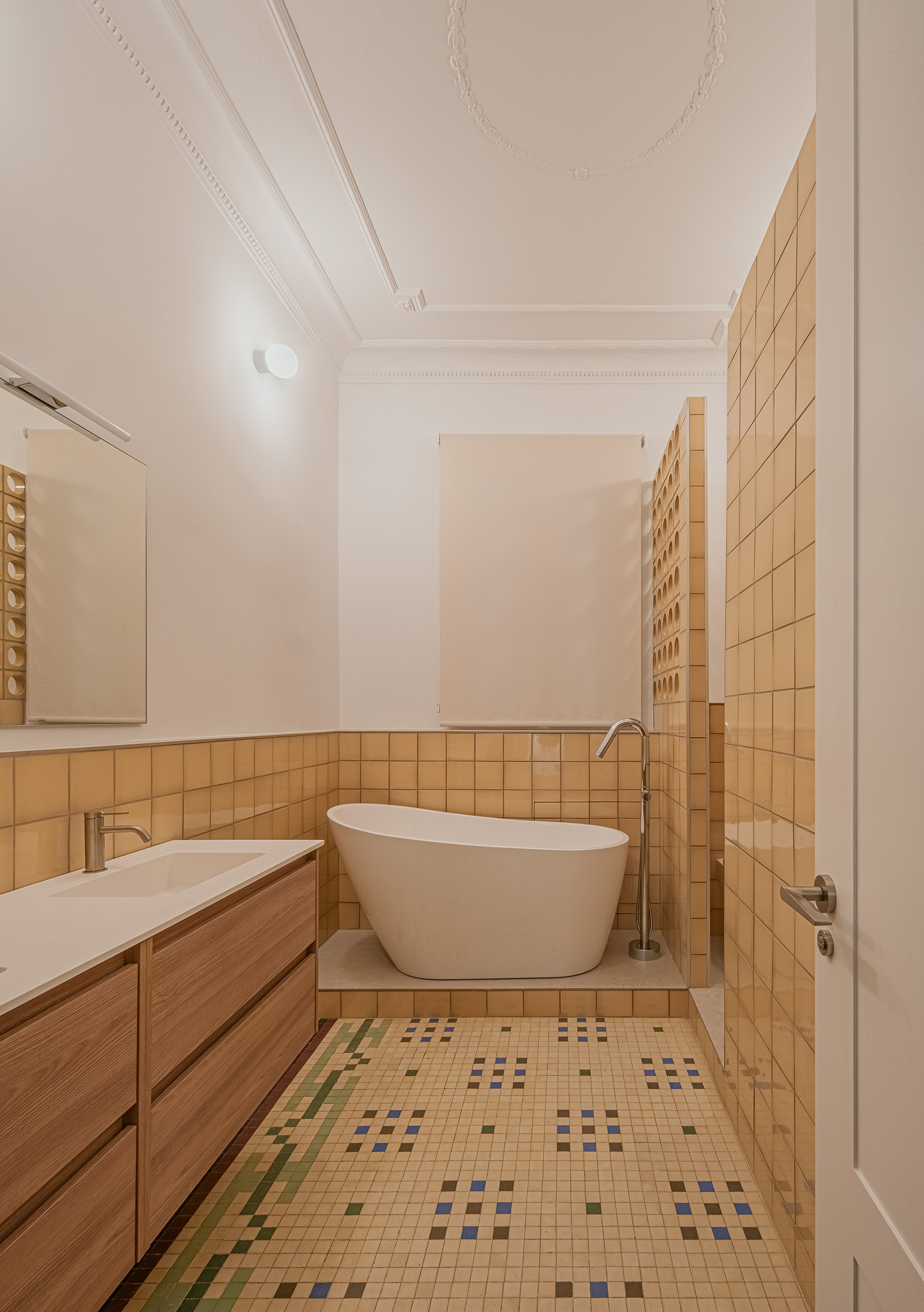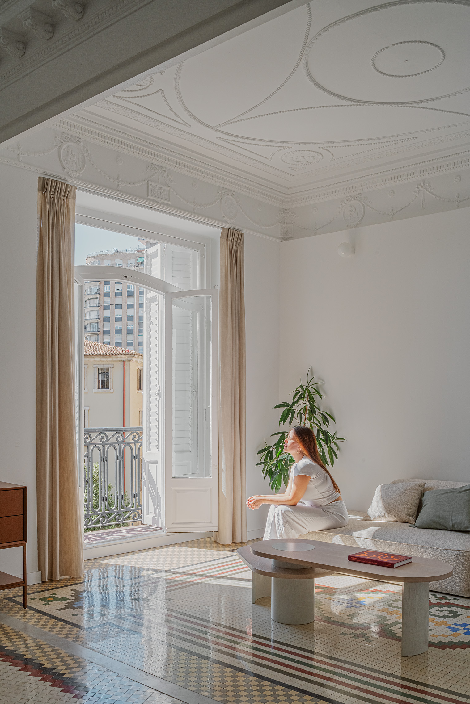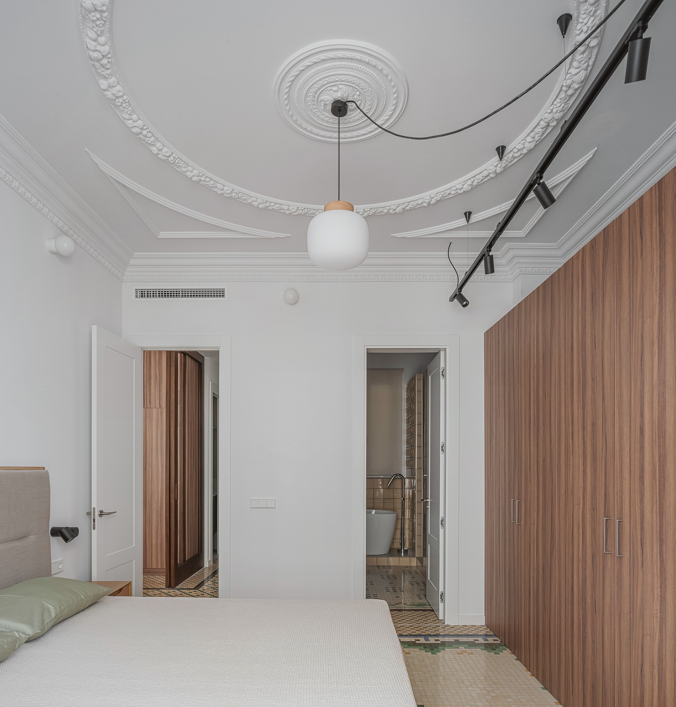 La gestión global de proyecto y obra permitió coordinar de forma eficiente todas las fases del proceso, desde el diseño inicial hasta el interiorismo final. Esta metodología integrada facilitó la toma de decisiones y la resolución ágil de los imprevistos propios de una rehabilitación en edificio histórico. La restauración de los elementos decorativos, junto con la actualización de las instalaciones y el mobiliario a medida, consolidan una vivienda que combina patrimonio y contemporaneidad bajo una misma mirada arquitectónica.